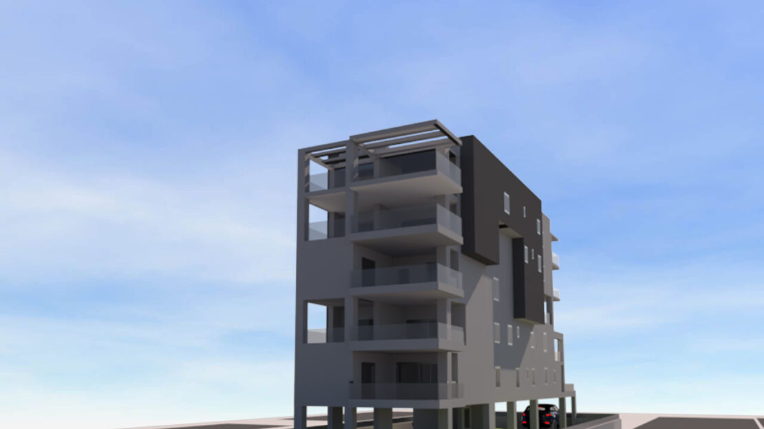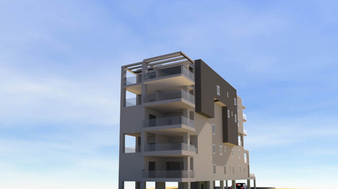Πωλείται διαμέρισμα 5ου ορόφου, 94 τ.μ., με σαλόνι, κουζίνα, δύο υπνοδωμάτια, μπάνιο και WC. Είναι προσόψεως, προσφέροντας άπλετο φυσικό φως. Όλα τα διαμερίσματα διαθέτουν θέσεις πάρκινγκ και αποθήκη, ενώ η θέρμανση γίνεται μέσω αντλιών θερμότητας για μεγαλύτερη ενεργειακή απόδοση. Η αποπεράτωση του διαμερίσματος αναμένεται σε περίπου 16 μήνες.